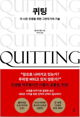 " 퀴팅은 모든 삶의 영역에서 효과를 발휘하는 중요한 개념. 무언가를 그만두고 새로운 시작을 하는 행위는 성장과 발전을 이끌어내는 기술이자 생존 기법"