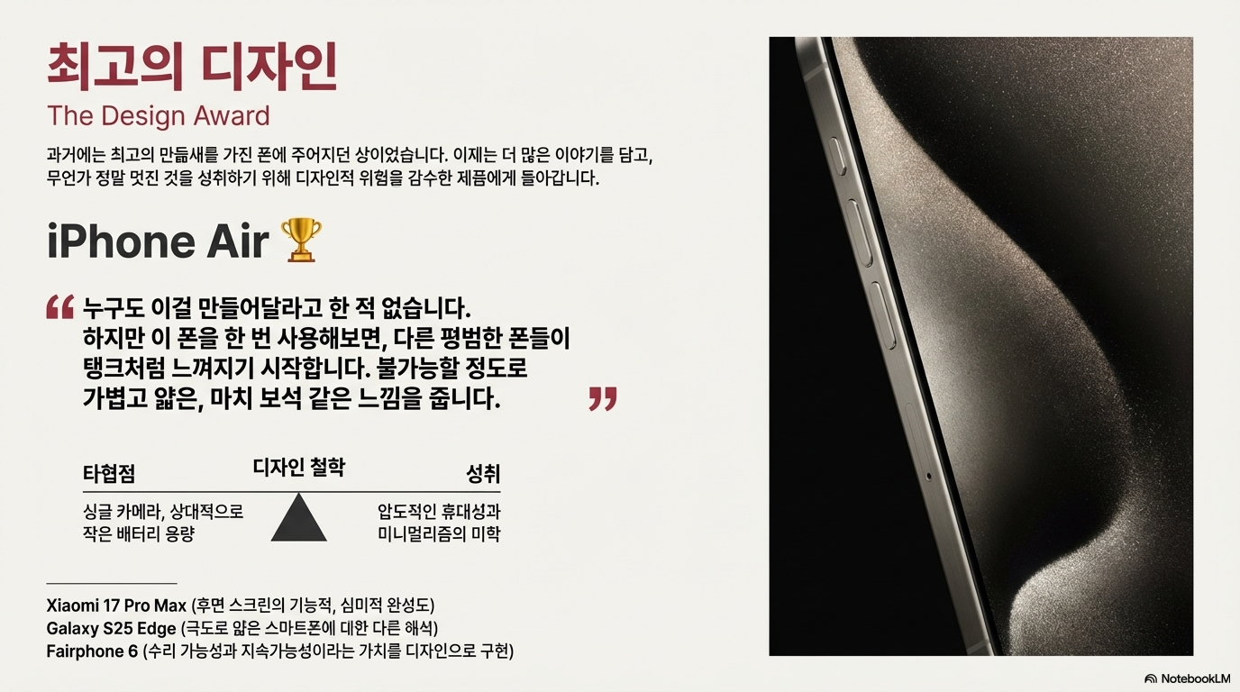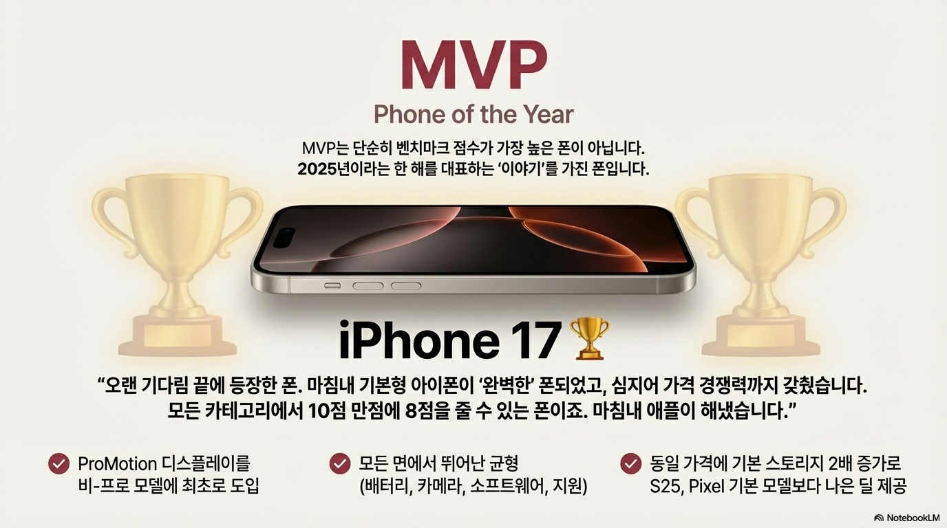 가장 높은 벤치마크 점수를 가진 폰이 아니라, 2025년이라는 한 해를 상징하는 '이야기'를 가진 폰에게 주어지는 상입니다.
