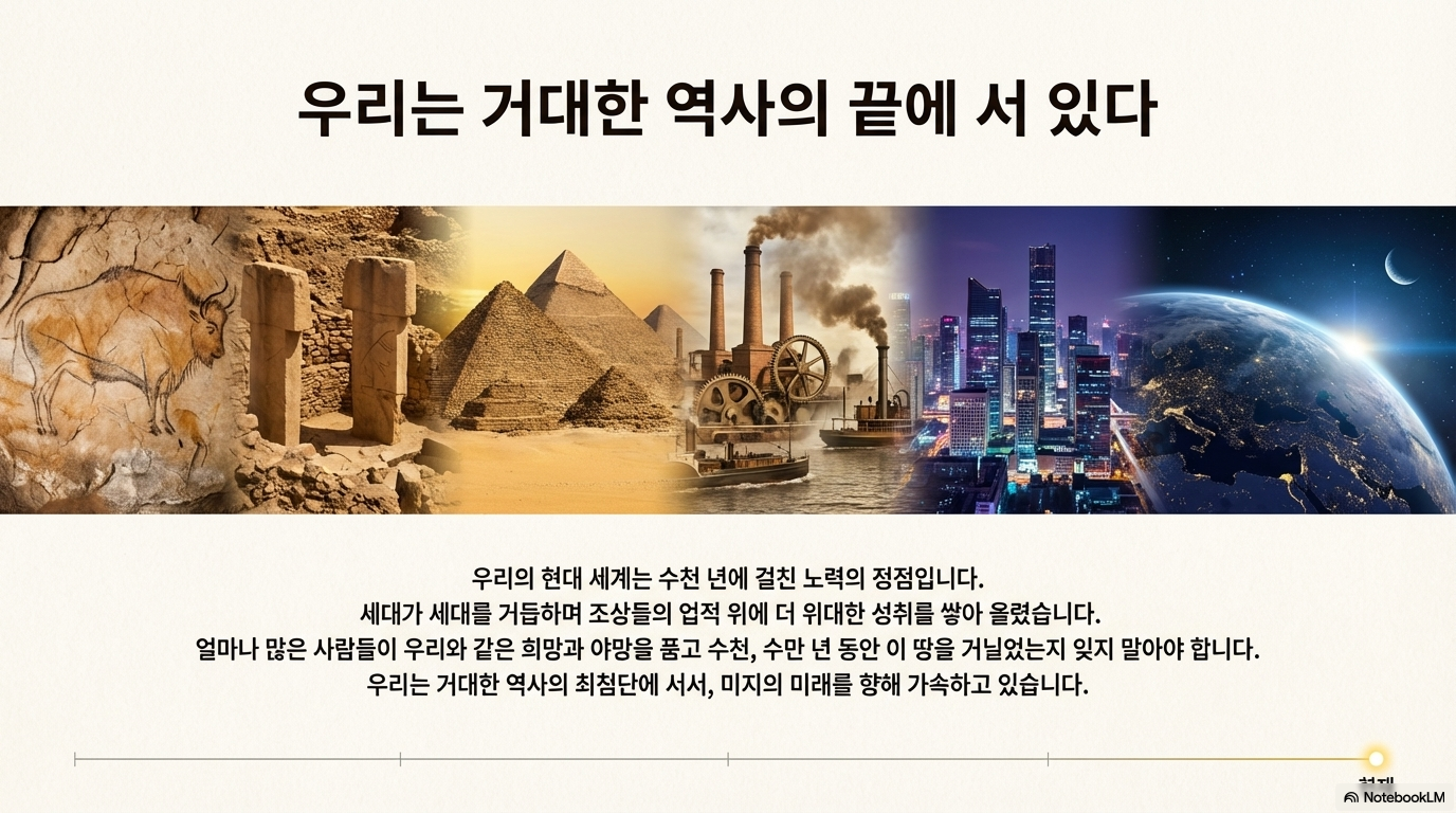우리 모두는 이 거대한 역사의 끝자락에 앉아 새로운 미래를 향해 가고 있습니다.
